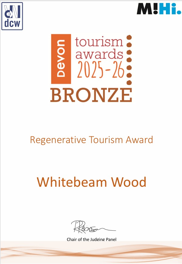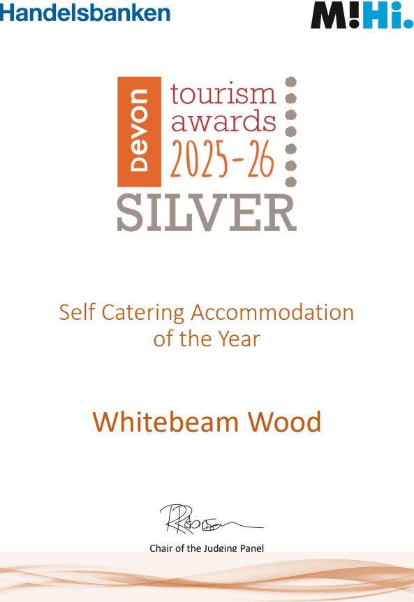 Whitebeam Wood has won GOLD for Dog Friendly, SILVER for Self Catering, and BRONZE for Regenerative Tourism in the 2025 Devon Tourism Awards — and we were the ONLY standalone holiday cottage finalist in all these categories.